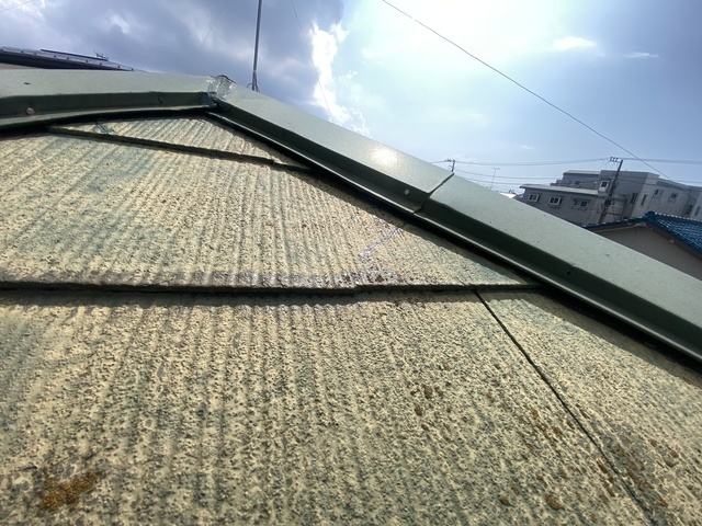 スレート屋根は重なって貼っていますので棟から遠いほどはがす範囲が多くなります。