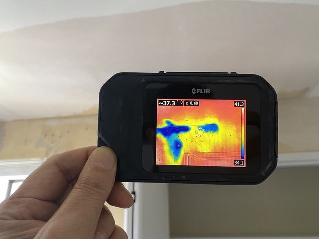 赤外線画像なので、青い部分が雨漏り箇所です。