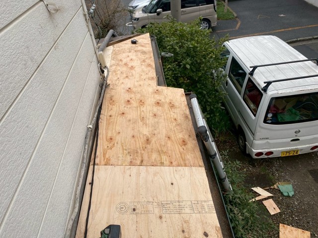 この壁際の流れ部分に板金が施工されていませんでした。