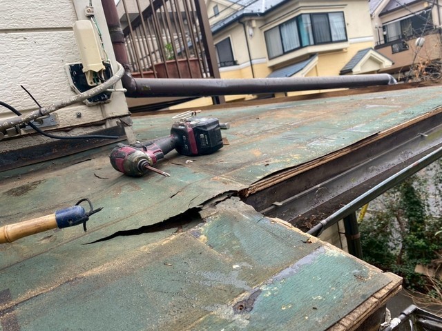 既存屋根を剥がして、雨漏り原因がわかりました。